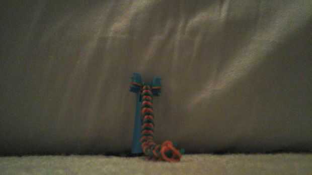 las bandas deberían empezar a formar en una cuerda como banda. Repita el proceso hasta que tenga aproximadamente 50 bandas en su telar.