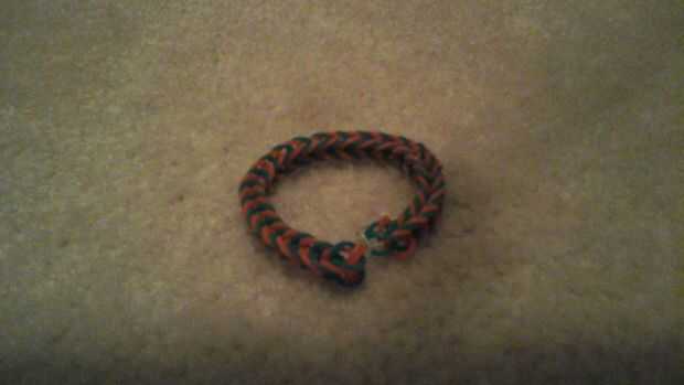 la grapa ya unido a un extremo de la pulsera al otro extremo de la misma. Ahora que ha completado la pulsera de telar del arco iris!