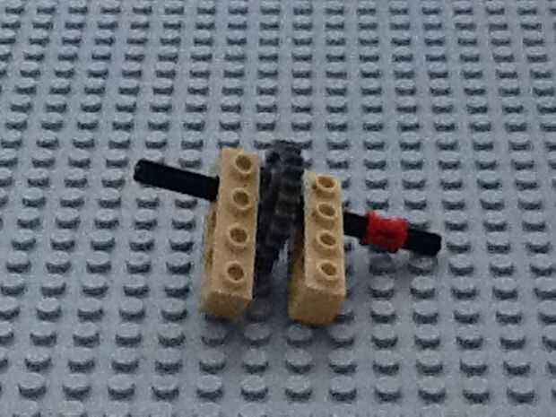 La primera Asamblea de engranaje es la perilla de control: debe haber espacio entre el engranaje y los ladrillos technic 4 x dos 1 por lo que el equipo se deslice hacia adelante y hacia atrás. Esto hace que se puede alternar la participación de los equipos. El segundo conjunto es simplemente una transferencia de 1:1 y el lugar de salida. La tercera Asamblea es el primer paso en las decenas de salida del lugar.