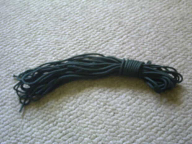 Un elemento que puede ser improvisado en un buch cosas es cordón. 550 cable siendo el mejor shoul llevar con usted por lo menos 25 pies de este material. Usted puede utilizar el cable real para cosas empatando, haciendo un arco, trampas y férulas, pero también puede utilizar las hebras más finas, internas para la pesca y a partir del fuego. Un alternatvive más barato (y menos recomendable) es la línea de ropa, que también está bien para objetos más ligeros y a partir del fuego.