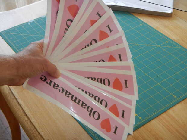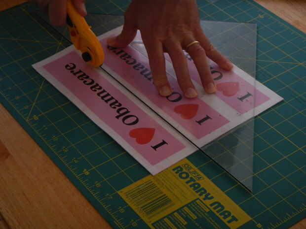 Finalmente, alineación por el ojo, hacer los cortes que separan la hoja (o cubierta de hojas) en adhesivos acabados.