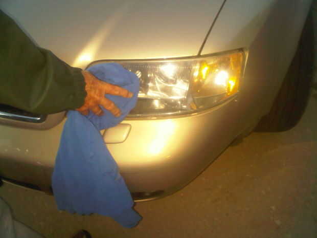 3. Limpie el lente, notan que los arañazos son más finos. Si todavía observas cualquier arañazos profundos, siguen lijar con el disco # 2 hasta que la superficie quede lisa.