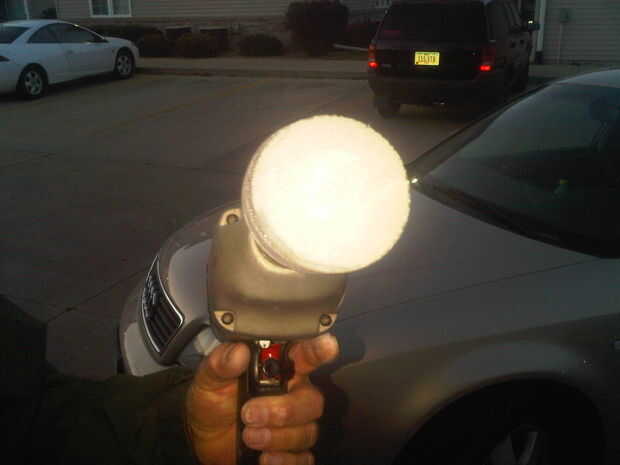2. utilizando un rociador, aplique suficiente agua para humedecer la almohadilla de espuma en la superficie del disco # 3 y lente.