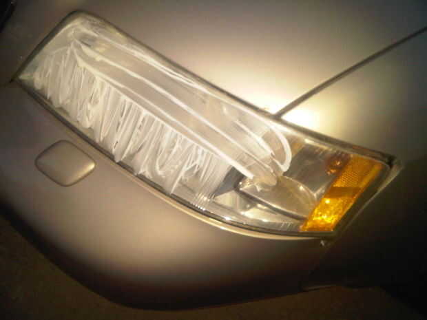 4. Retire la cinta adhesiva y limpie la lente con un paño limpio. Lave cualquier salpicón residual desde el vehículo con agua jabonosa.