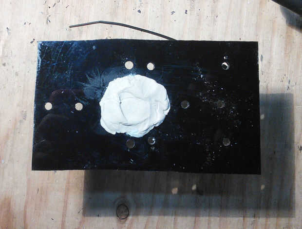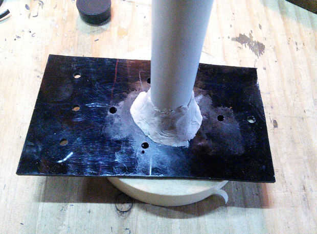 Cuando se utiliza la masilla epoxi, asegúrese de que fluye a través de los orificios en el tablero de plástico y tubería para mejor resistencia.
