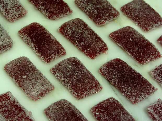 Hice Tuna fruta de paté, es un término francés de lujo para "pasta de la fruta." De fruta de paté puede ser bastante frustrante a veces, especialmente cuando se trabaja con una fruta inusual. Pectina, agente gelificante en la fruta de paté, es desesperantemente sensible a pH, contenido de azúcar, la presencia de iones y la concentración de pectina de los frutos mismos. He realizado tres tandas de esto, y sólo uno ha sido de una coherencia que es satisfactoria para los caramelos. Afortunadamente, jalea de tuna es tan deliciosa como el caramelo de la tuna, si un poco más difícil de comer.