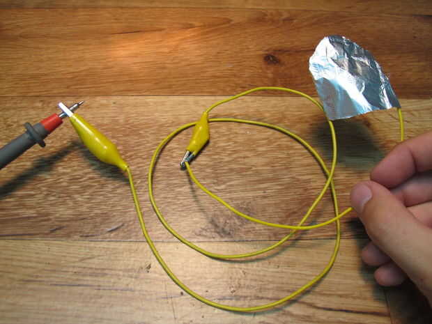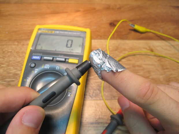 Toque el cable del multímetro segundo a la hoja en su dedo. Debe mostrar la resistencia de 0 ohms. Rehacer la operación foiling si ves más que la resistencia de 15-20 ohmios en la pantalla. Si todo está bien, estás listo para utilizar la herramienta que acaba de hacer.