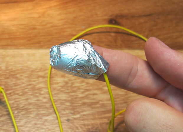Ahora enrolle el papel de aluminio alrededor de su dedo índice.