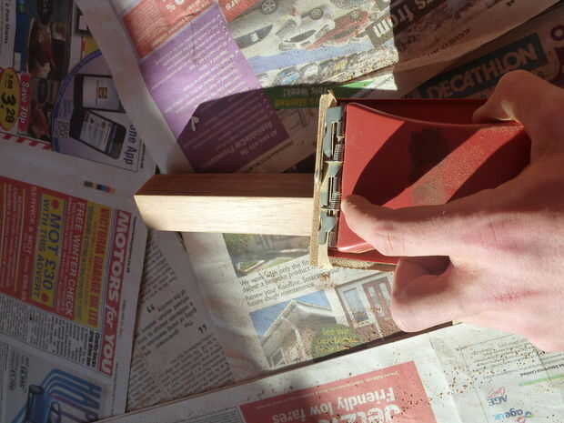 Ahora para algunos lijar más. Si las patas y otras piezas son removibles, puede ser más fácil para usted si se quita, esto permite diseñarlos planos y significa que usted no estar aplicando presión lateral de las articulaciones mientras lija. No repito, debería haber tenido un montón de práctica en lijar con el grano ahora.