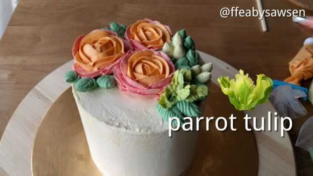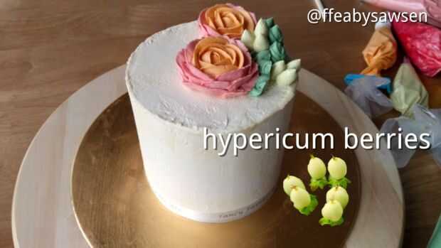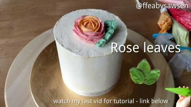 Todos pero las rosas se canaliza directamente sobre la torta. Y ahora usted sabe cómo hacerlas todas! Sólo comience con las cosas grandes, luego llenar el resto del espacio. Pastel de bonito! ¡ Yay!