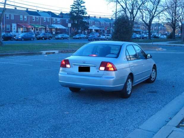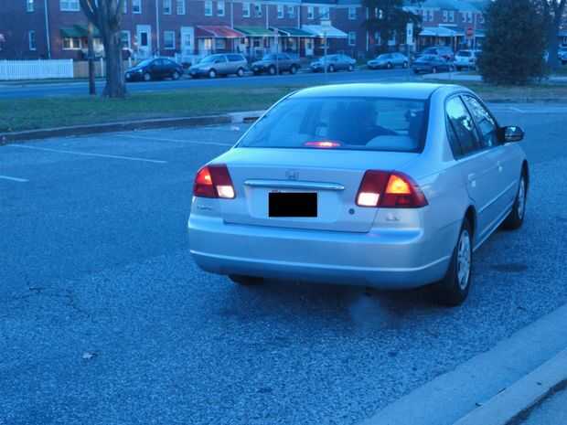 · -Cuando la parte delantera de su coche se está pegando hacia fuera en la calle de la acera, coloque su pie en el pedal del freno.