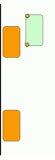 Derecha hasta bloqueo completo. La parte delantera del vehículo se moverá en el espacio. Mantener y ojo en sus esquinas delanteras. Recuerde que hay unas pocas pulgadas de carrocería poco más allá de lo que se puede ver. Si usted piensa que usted puede cortar el parachoques del coche estacionado delante de usted, enderezar un poco el volante.