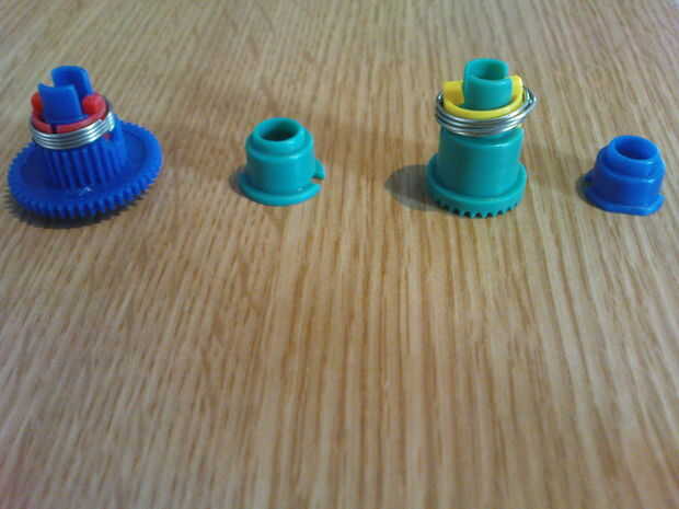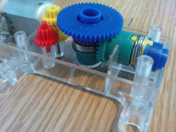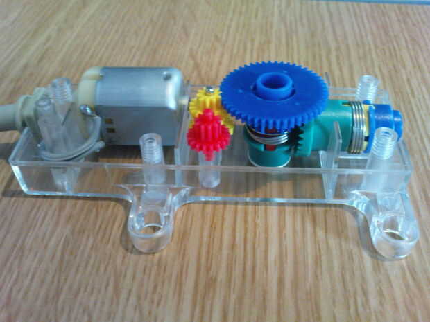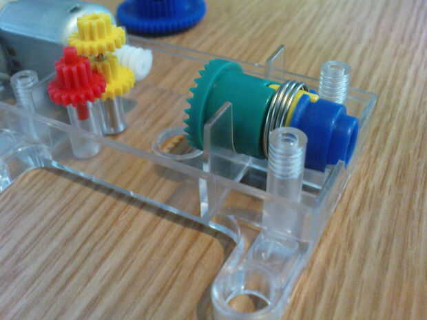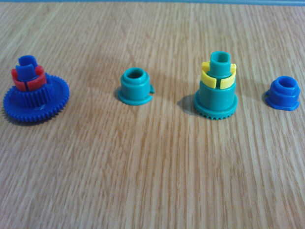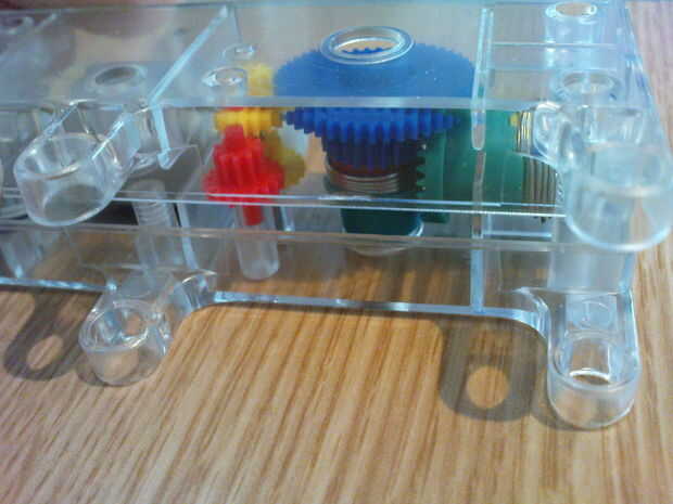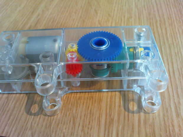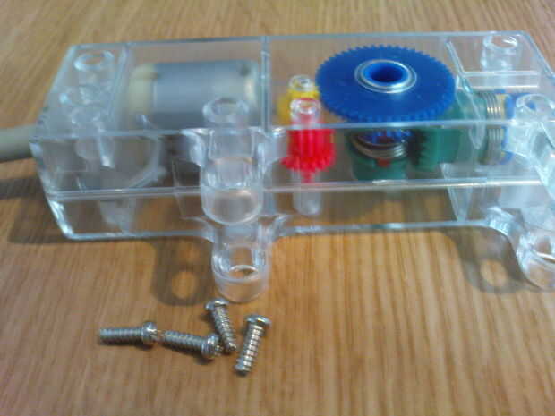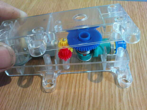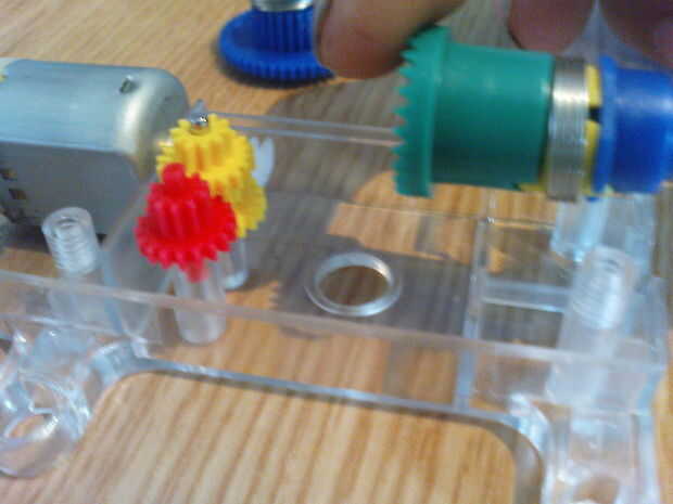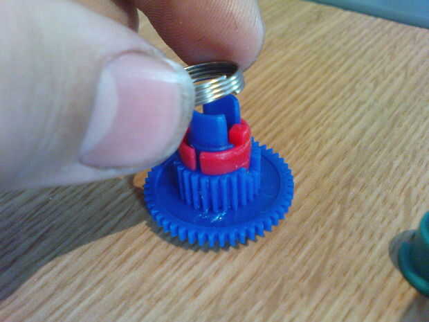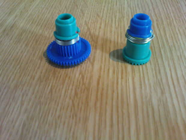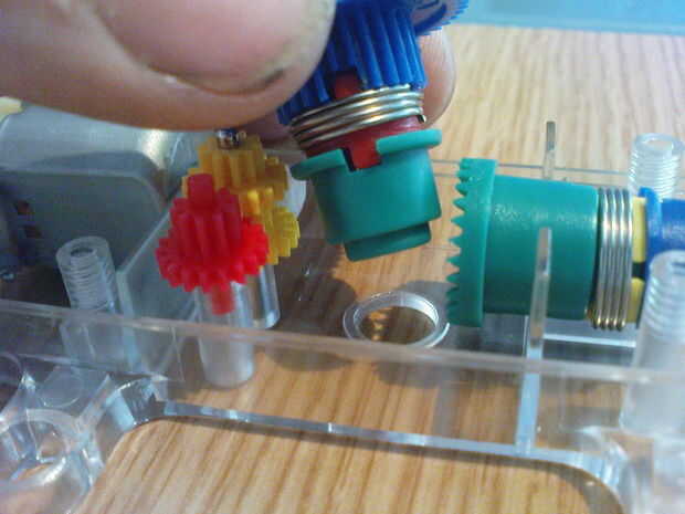 Coloque el engranaje más pequeño en primero y luego el engranaje más grande. Entonces vuelva a poner el caso y hasta los tornillos.