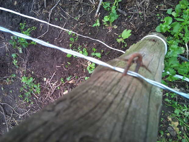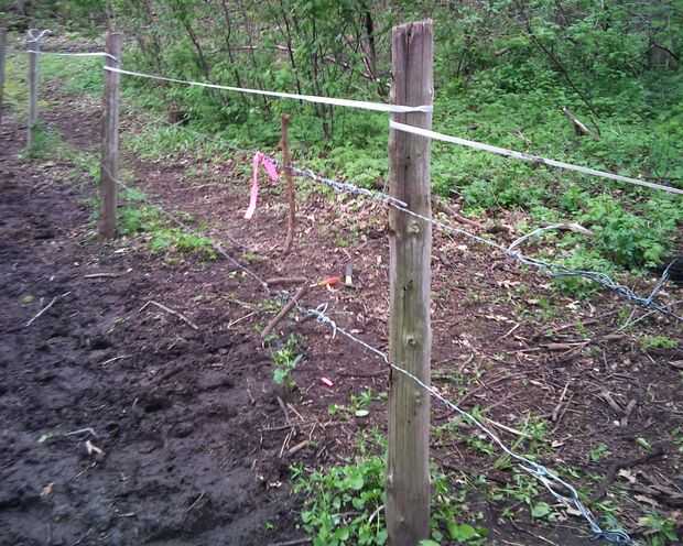 Es una buena idea tener el cable en el interior de la valla... para que animales hambrientos, empujando la cerca no reventar las grapas hacia fuera.