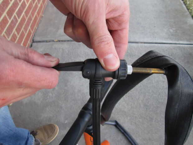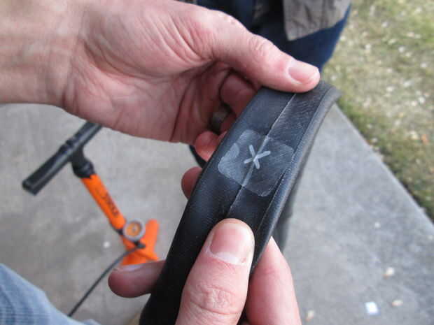 12. probar el parche por inflar el tubo y escuchar en su sitio de parche para los sonidos de escape de aire.