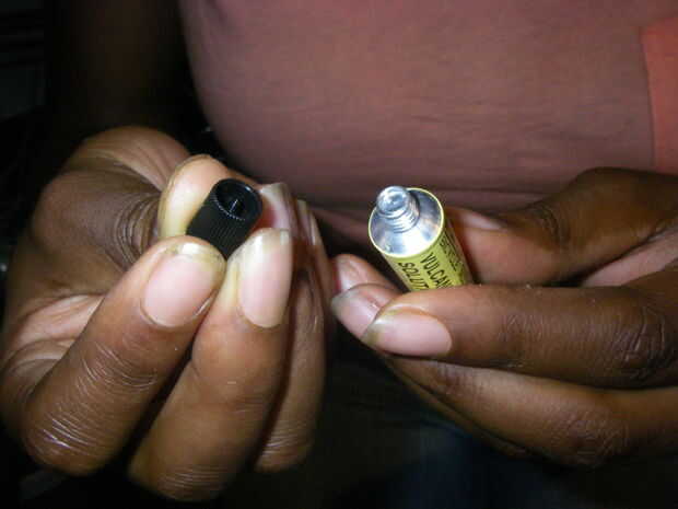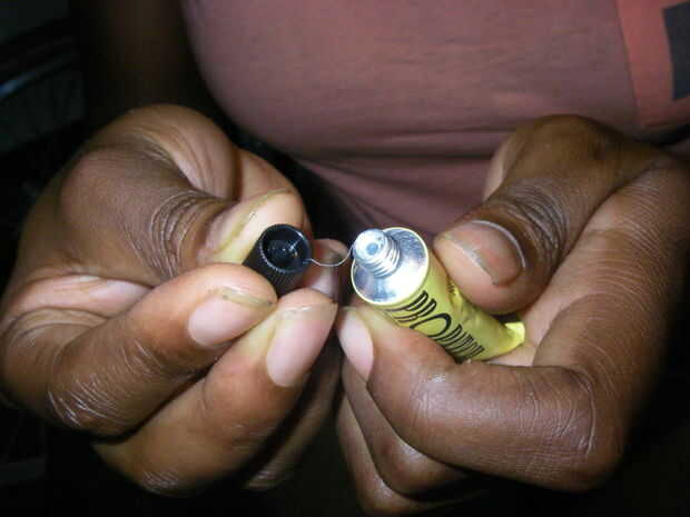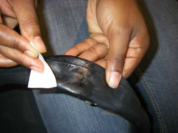 Untar una capa delgada de líquido todo el escape, cubriendo la zona donde irá el parche de vulcanización.