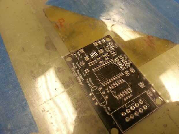 me gusta grabar sólo 2 lados de la plantilla para asegurar que la plantilla no gira. La razón no cinta de los 4 lados, es porque la Mylar plantilla parece demasiado la flexión. Y es un dolor a la hora de retirar la plantilla.