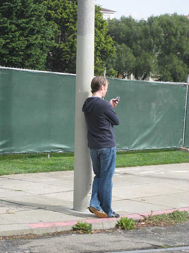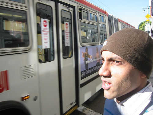 Si usted está esperando en una parada MUNI al aire libre que no tiene una señal acerca de llegadas, llame al 311 o 511 para pedir el horario. Siempre lo hago porque no puedo soportar no saber. Las otras personas esperando serán probablemente oigan mientras que usted está llamando, así que probablemente no importa lo si le toca repetir la respuesta en voz alta para que pueda oír.