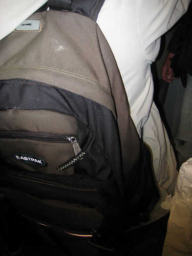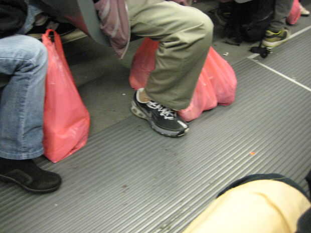 Si estás sentado, ponga su bolso en su regazo o entre sus pies. Si vas de pie, coloque su bolsa entre tus pies en el suelo o abrazo al frente de su cuerpo. Si en todo se llena, no use la bolsa para que sobresalga de su lado o detrás. Se terminan las personas otros y hacer más difícil para la gente a subir y bajar si ha atestado en todos.