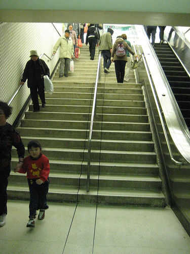 Seguir las indicaciones salida a encontrar su camino. Recuerde pararse derecha, caminar a la izquierda en la escalera mecánica! Gente con bicis no puede utilizar las escaleras mecánicas; usted debe caminar o utilizar el ascensor.