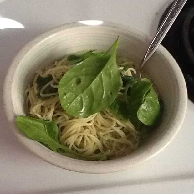 esta pasta era primer hecho para mí por una fecha, con un montón de espinacas frescas, tomates cherry, queso de cabra y abundante aceite de oliva y rehogamos el ajo. Decidir poner mi toque al plato, inclinado hacia el mar Mediterráneo. Cambié el ques
