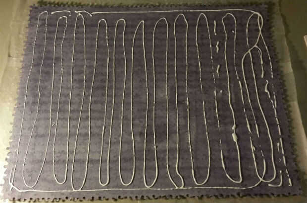 Usando pegamento de artesanía, rocíe una pequeña cantidad de cola a rayas en el rompecabezas completo espaciando las rayas separadas entre sí aproximadamente 1 pulgada.