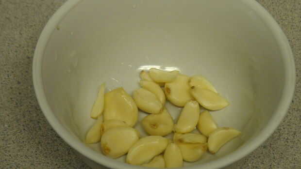 Tomar el lado de la raíz de ajo hecho y presionar desde la parte superior sobre el ajo. Cuando los dientes de reventarlas lugar dentro del envase, cerrar y agitar. Después de unos 20 segundos el ajo debe pelarse y todo lo que tienes que hacer es estaba apagado.