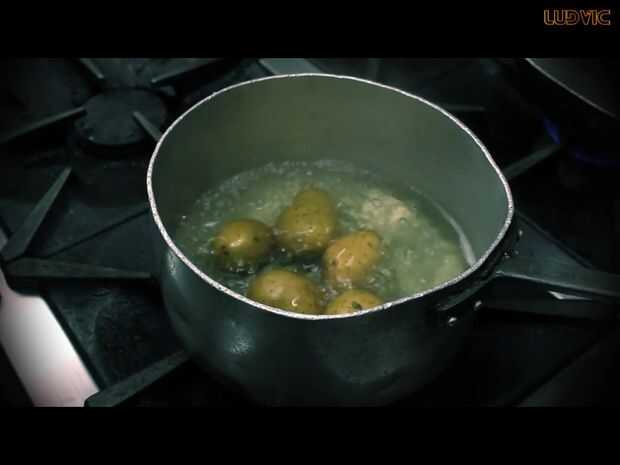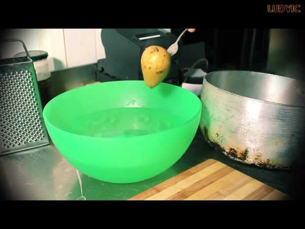 poner la patata caliente en el hielo y de agua para 10 segundos y después la cáscara muy fácil menos de 5 segundo