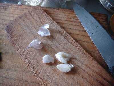 Agarrar la extremidad puntiaguda de la piel y todos deben salir y tu ajo está listo para la siguiente etapa en el proceso de cocción.