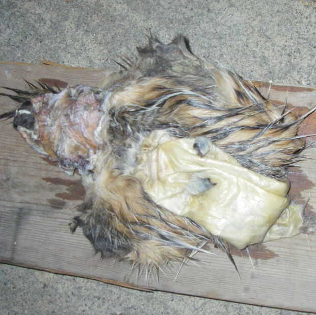 Por ahora, estiramiento de la piel hacia fuera tanto como sea posible y si se puede, lo peg a una junta para que se seca se extendía hacia fuera. Frote hacia abajo con una libra de sal para mantener la grasa de la piel de la descomposición.