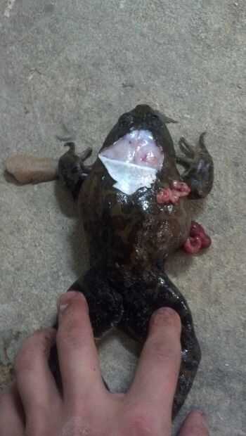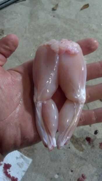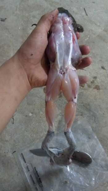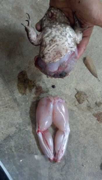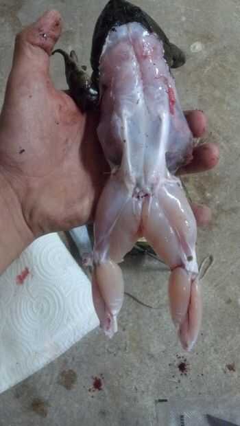 -Nota! Es normal que las ranas para moverse, los ojos parpadean, patear, gatean o si no muestran signos de vida. Esto es natural. Todos los reptiles para ello. Yo he limpiado tortugas que patearon y me rasguñó una hora después de los decapitados. Serpientes han intentado arrastrarse fuera de la bandeja cuando cociné fresco. Por esta razón te recomiendo al menos un día de refrigeración antes de cocinar reptiles o anfibios.