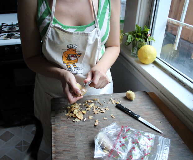 Cómo pelar y almacenar el jengibre fresco (3 / 4 paso)