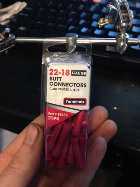 Recuerda el tamaño del cable de antes? Encontrar un conector de tope con el tamaño correcto escrito en él.