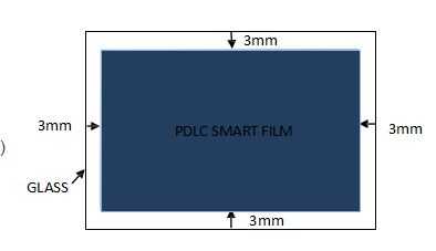 Por ejemplo: vidrio dimensiones: 1000 mm * 2000 m m, tamaño de la película de PDLC entonces: 994 mm * 1994 mm.