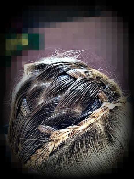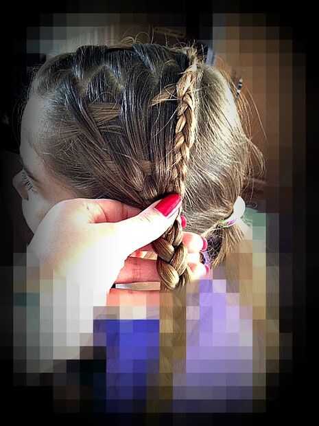 Agarra 2 mechones de pelo de la cola de caballo de lado derecho y comenzar a trenzar hasta la corona.