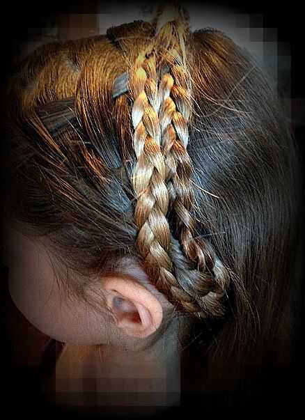 Puesto que el pelo de mi hija es tan larga, decidí envolver sus 2 trenzas en su cabeza.