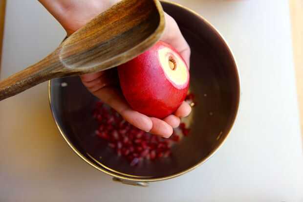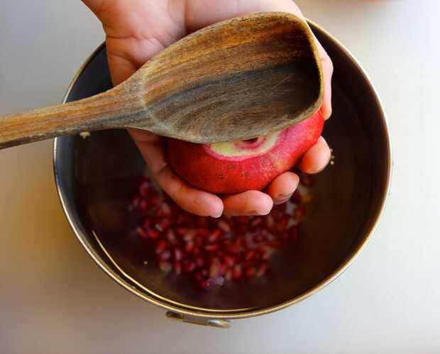 5. Ajuste su puño en la fruta para que usted puede golpear a los lados de la Granada para quitar las semillas restantes.