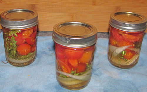 El año pasado, me encontré con una abundancia de tomates Cherry. No es 100% seguro de que hacer con ellos, decido, mientras conserva un lote de mi salsa de pimienta caliente "Hellish", un pequeño lote de tomates en vinagre se puede también.