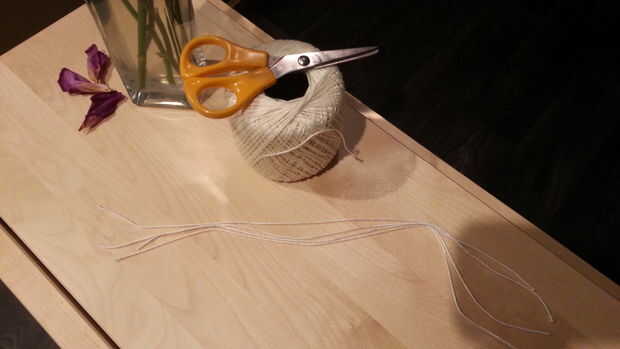 Cortar la cadena en tantos trozos como usted tiene flores para colgar.  Les corté alrededor de 10 pulgadas o menos.