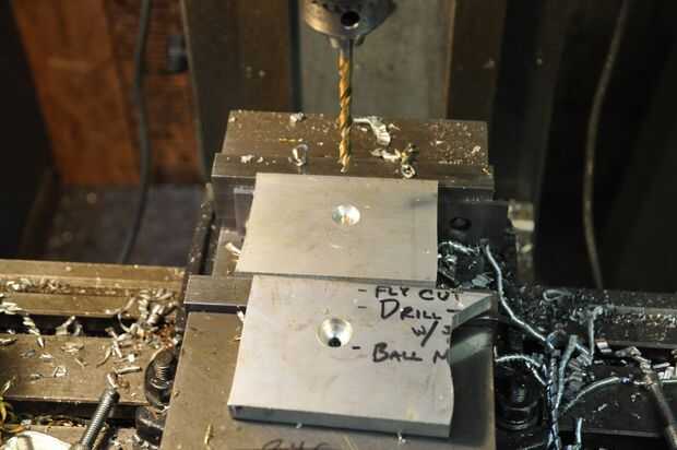 - Una vez que todo está bloqueado, eres primero placa, bloquee en la prensa y perforar con la broca de tamaño mismo que perforará la bola. Esta placa será la tapa de sujeción.