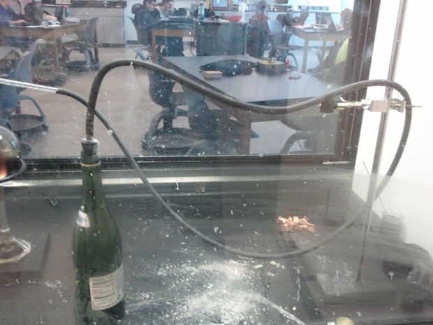 5.) encontrar alguna manera pasar los gases a un frasco de colección (puede ser una goma de la manguera, tubo de vidrio en el tubo de ensayo gigante para recogida de gases.)