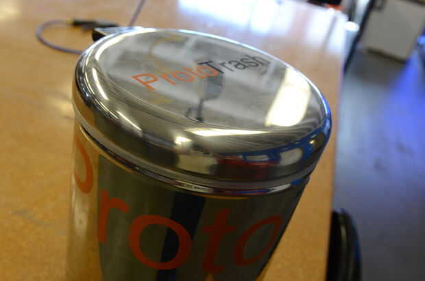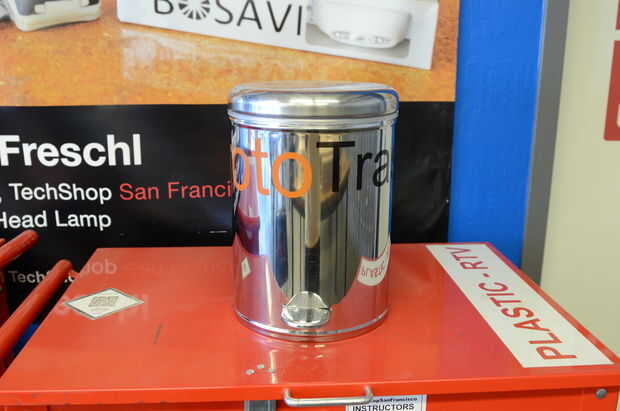 Este proyecto fue inspirado por el deseo de hacer algo con la papelera de aspecto mate en nuestra oficina ProtoTank . Afortunadamente, este proyecto fue fácilmente realizado utilizando las herramientas de corte de vinilo y maquinaria en TechShop San Francisco, que así pasa a estar donde ProtoTank se basa así.