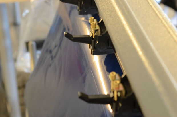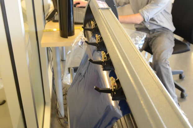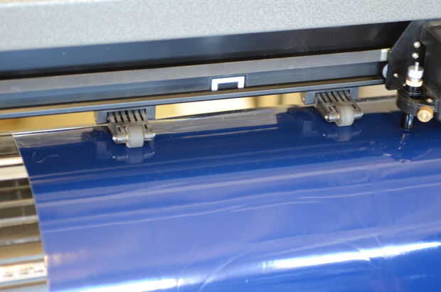3. Inserte el vinilo por detrás, cara arriba y los rodillos uniformemente a lo largo de la anchura del vinilo.