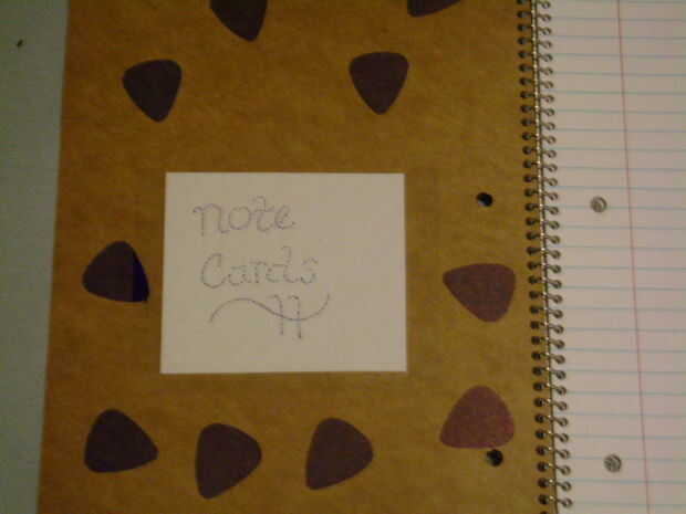 Imprimí el logo de Sixxkiller y luego recortar. Luego coloqué la hoja de plástico transparente con el papel de lado sigue y cortar el plástico a ser ligeramente más grande que la imagen que elegí. Entonces se determina dónde colocar en el cuaderno negro llano. Cuidadosamente luego pegué abajo de la imagen con un palillo de pegamento. A continuación tiró cuidadosamente el papel protector de mi hoja de plástico transparente y aún más cuidadosamente había colocado encima pegado abajo de la insignia Sixxkiller. Abrí el libro de nota y utiliza un pedazo del papel protector de la lámina de plástico para hacer un "bolsillo" para colocar tarjetas en. A continuación encolar el "bolsillo" y algunas piezas adicionales de plástico transparente se usa para sellar la parte inferior tres bordes, dejando la parte superior abierta para tarjetas. También trazó un pick de guitarra varias veces en el interior tapa de la notebook y luego los colores con sharpies. Se puede decorar el interior y exterior sin embargo te gusta.