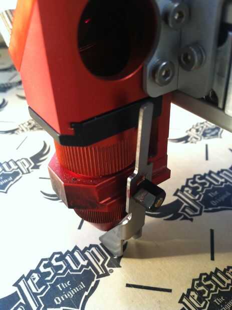 Ahora que tiene su sustrato (cinta del apretón del patín) en posición, desea utilizar la herramienta enfocada manual para ajustar la distancia de la cabeza de corte para que usted conseguirá un buen corte. Usted no puede confiar en enfoque automático como la cinta de agarre puede ser más baja que la mesa de su uso en el cortador del laser (tabla de miel peinado en mi caso).
