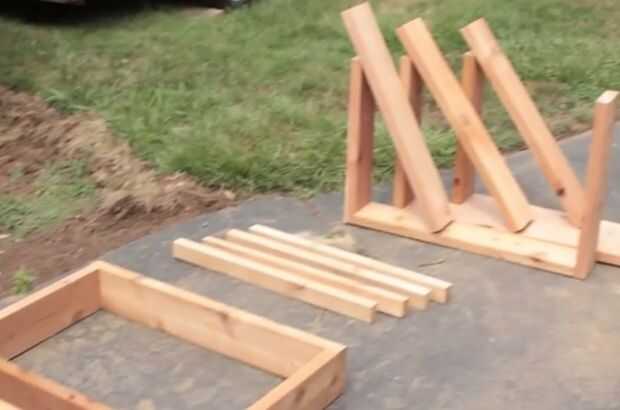 Un básico 36 pulgadas por 24 pulgadas compostera, cada pieza delantera y trasera sería 36 pulgadas largo. Sujetado entre ellos sería dos caras en 21 pulgadas de largo (Tip: para obtener una dimensión exterior de 24 pulgadas reste el espesor de la parte delantera y trasera, en este caso 3 pulgadas — para obtener la longitud de los lados.)