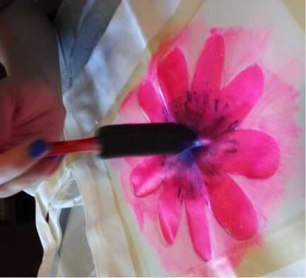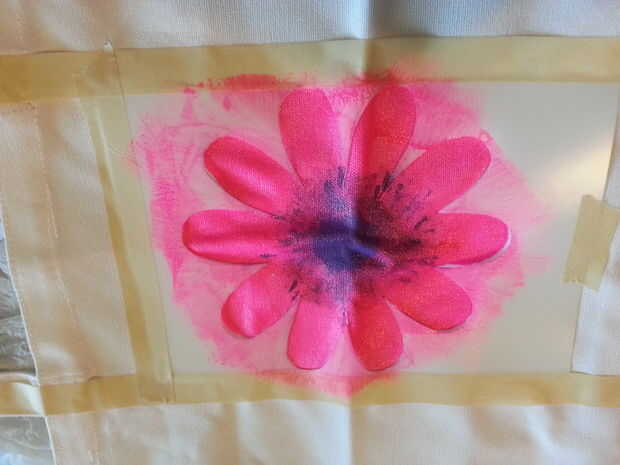 Con el mismo pincel de esponja pequeño utilizado para su primera pintura de tela, retoque al centro hasta que estés contento con tu diseño de gradiente. El medio debe ser tamaño de un cuarto de un color sólido, con un gradiente que lo rodean.