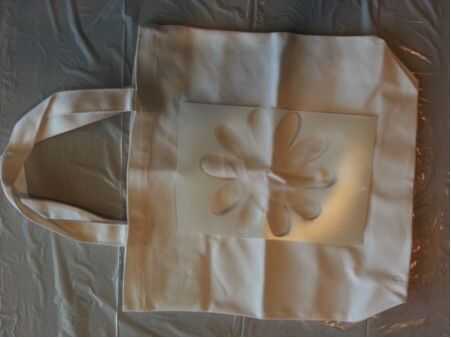 Ahora Coloque su bolso encima de su nueva área de trabajo. Luego coloque su diseño de la plantilla en el centro de su bolso de mano.