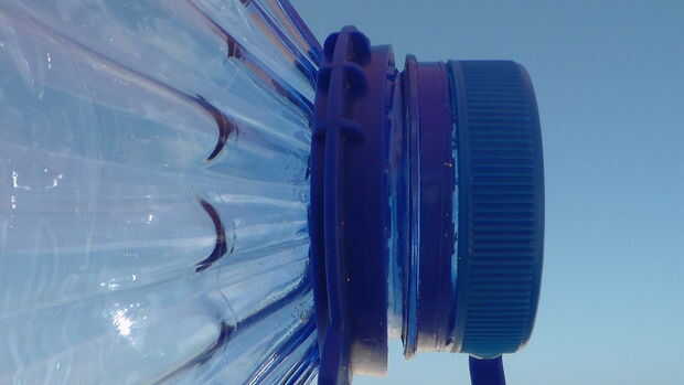 Asegúrese de que la botella es cerrada entonces cortar con el cuchillo en el centro, cortar 3 lados sólo