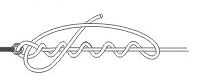 A continuación, utilice un nudo de remache mejorado para atar el monofilamento hasta el final del poste. Mi polo tenía un buen ojete en el final, pero tuyo no puede, en cuyo caso simplemente atar la línea justo debajo de la última bambú común por lo que la línea no se salga.